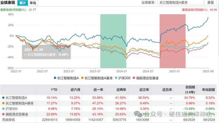 最近很可爱的一只基金,阐述是胜率型基金司理,关于回撤放胆十分严格,长江智能制造21年于今的最大回撤是-24%,年化收益是8.52%。