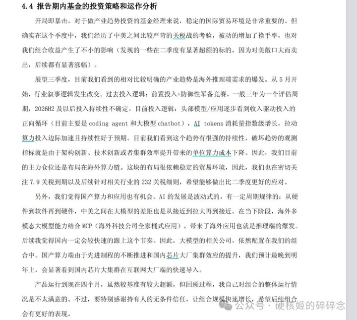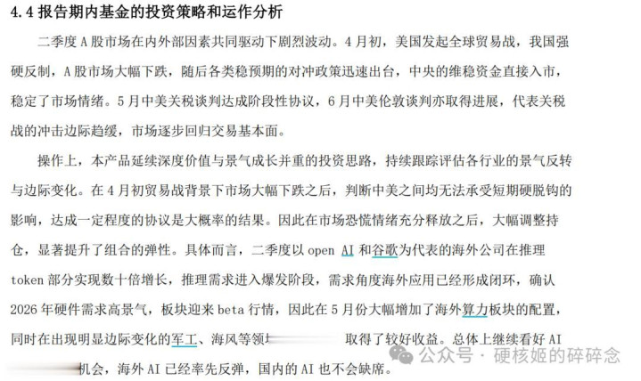 季报倒挺可爱的,刚接的时候崇拜写了这只基金运作的逻辑以及我方的倡导,Q2的时候又十分了了的说了我方的操作逻辑,大上分!